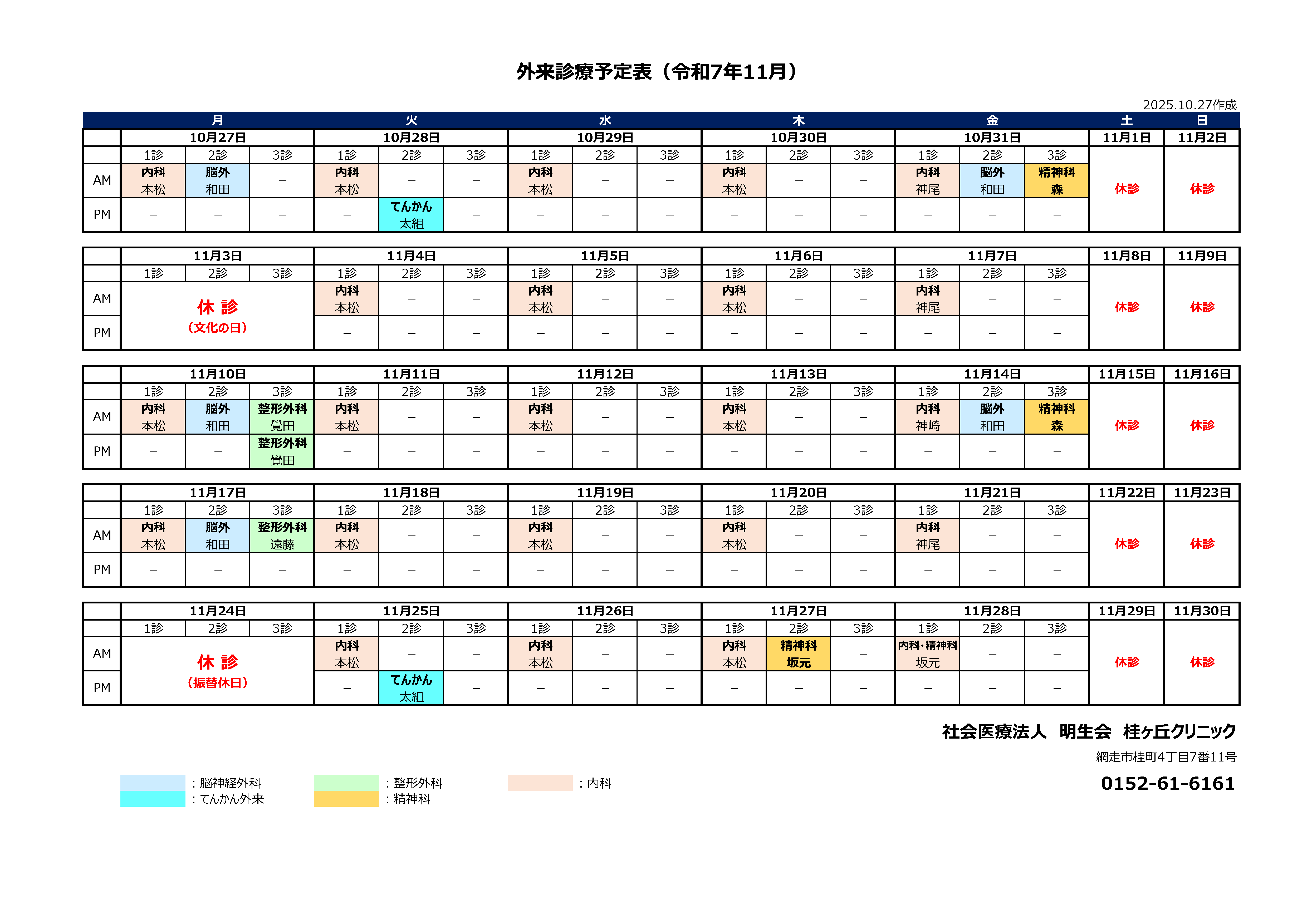 2024.10.12 令和6年11月より、第1・第3金曜日の午前中にて脳神経外科の診療を再開いたします。